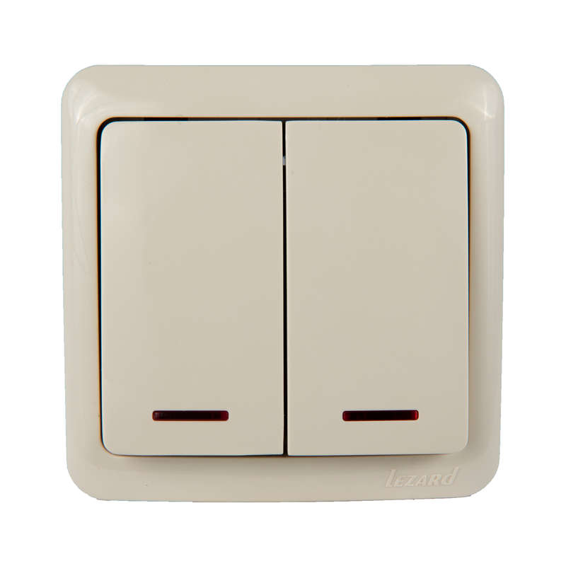 Выключатель 2-кл. ОП VIOLA 10А IP20 с подсветкой крем. LEZARD 751-0300-112