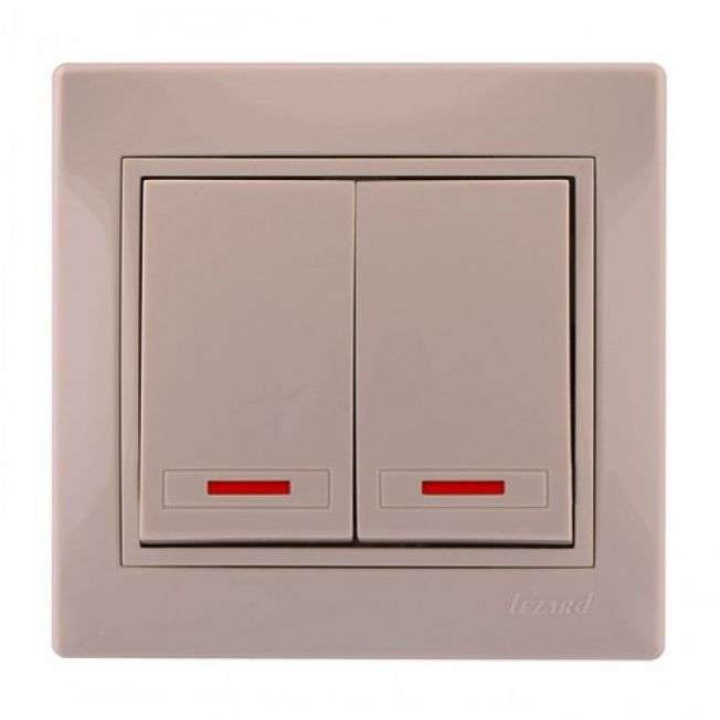Выключатель 2-кл. СП Мира 10А IP20 с подсветкой крем./крем. LEZARD 701-0303-112