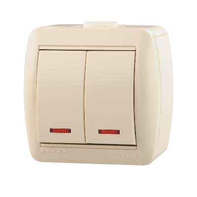 Выключатель 2-кл. ОП Ната 10А IP20 с подсветкой крем. LEZARD 710-0300-112