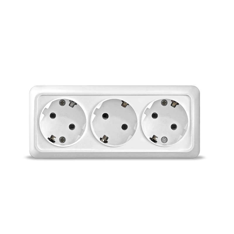 В интернет магазине компании ООО «Все для электромонтажа» на Главной странице вы можете перейти на страницу Каталог и выбрать категорию товара Розетки и выключатели там вы найдете вкладку подкатегории Электроустановочные изделия где нужно выбрать Розетка с заземлением стандарта SCHUKO в которой находится нужный вам товар Розетка 3-м ОП Олимп с заземл. бел. UNIVersal 1161.