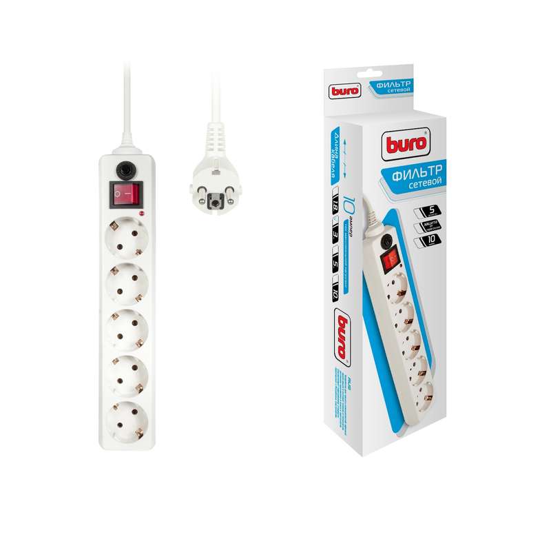 Наша компания реализует Удлинитель с сетевым фильтром 5х3м с заземл. 10А IP20 500SH-3-W CCA 3х0.75 бел. BURO 992290 оптом со склада, по минимальным ценам от завода изготовителя.