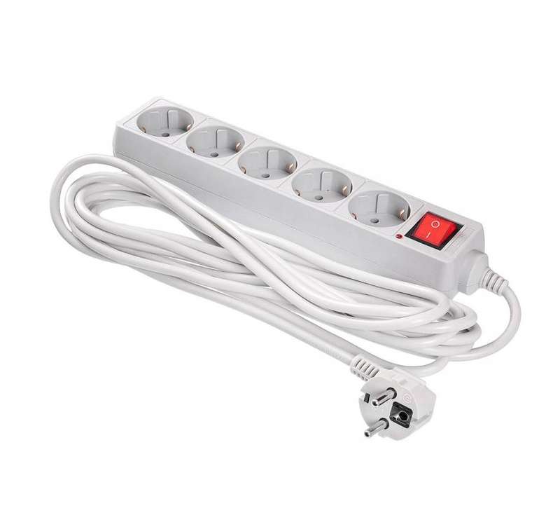 Удлинитель с сетевым фильтром 5х5м с заземл. 7А IP20 500SL-5-G CCA 3х0.75 сер. BURO 354127