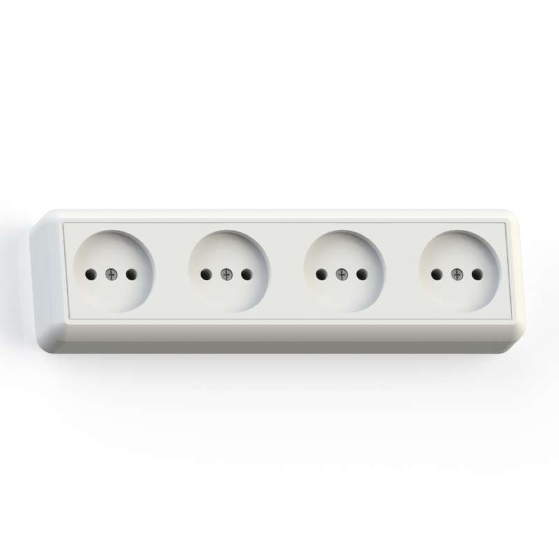 Розетка 4-м ОП Оптима 16А РА16-402 (в компл. с монтажной пластиной) бел. Кунцево 8024