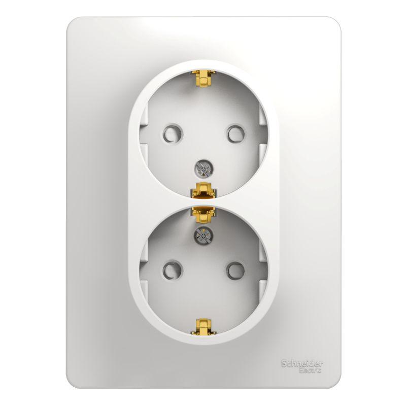 Розетка 2-м СП Glossa защ. шторки с заземл. в сборе бел. SchE GSL000126