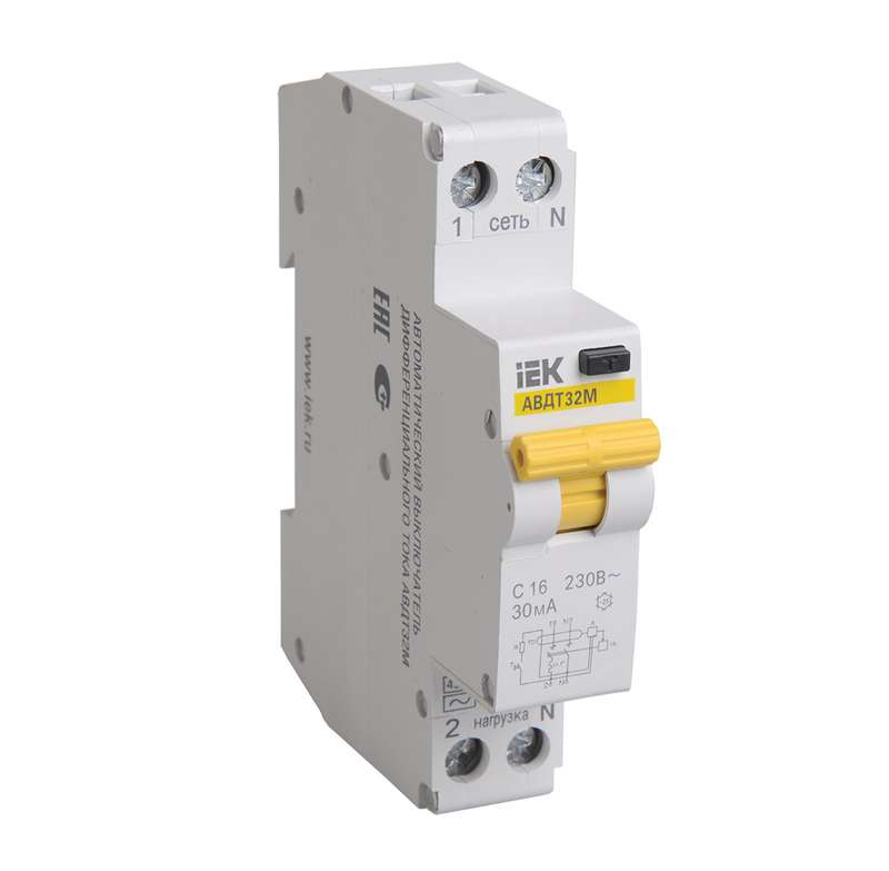 Как купить Выключатель автоматический дифференциального тока 1п B 16А 30мА тип A 4.5кА АВДТ-32М ИЭК MAD32-5-016-B-30 в Ростове-на-Дону или Краснодаре
