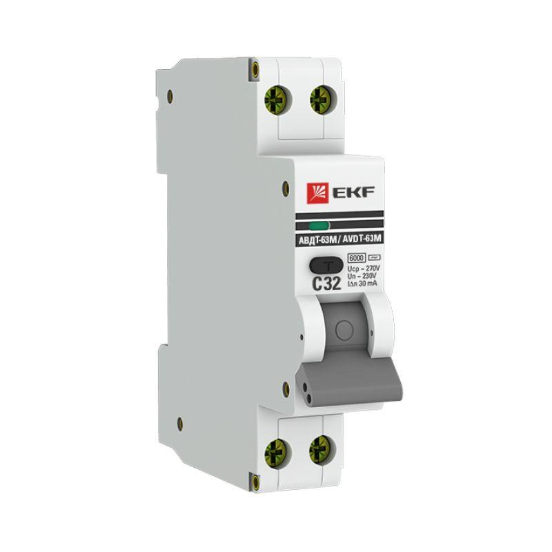 Выключатель автоматический дифференциального тока 1мод. С 16А 30мА тип AС 6кА АВДТ-63М (электрон.) PROxima EKF DA63M-16-30