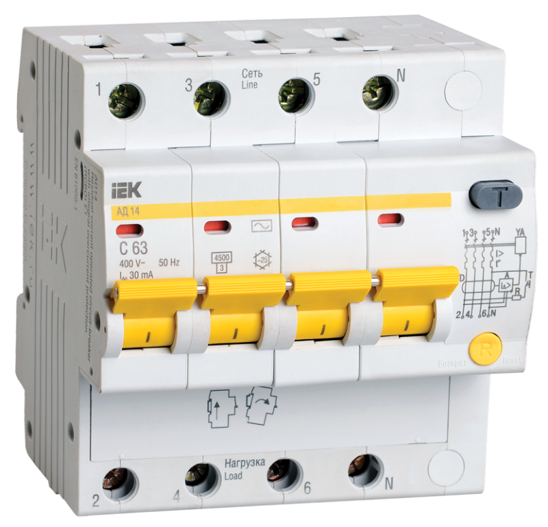 Как купить Выключатель автоматический дифференциального тока 4п C 50А 30мА тип AC 4.5кА АД-14 ИЭК MAD10-4-050-C-030 в Ростове-на-Дону или Краснодаре