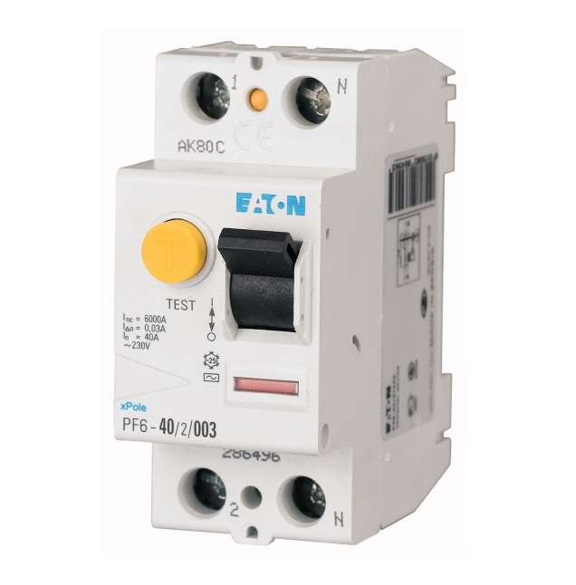 Выключатель дифференциального тока (УЗО) 2п 40А 30мА тип AC 6кА PF6 EATON 286496