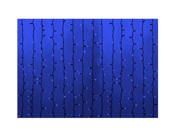 Гирлянда Дождь "ПЛЕЙ-ЛАЙТ" 2х1.5м 360LED 22Вт IP44 230В син.; фиксинг темн. зел. NEON-NIGHT 235-123