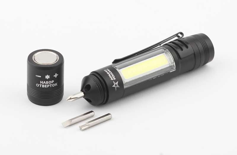Фонарь MB-702 АРМИЯ РОССИИ универс. Сапер COB 1.5Вт алюм. отвертки; магнит; клипса 1хААА блист. ЭРА Б0030200