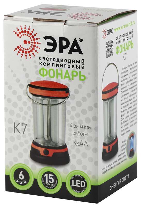 Фонарь K7 "Кемпинг" (6хLED 3хAA 4 режима карт. уп.) ЭРА C0044365