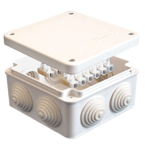 Как купить Коробка распр. ОП 105х105х56 7 выходов 4 гермоввода с клемм. 10А 12 контактов IP54 крышка на винтах бел. Epplast 110043 в Ростове-на-Дону или Краснодаре