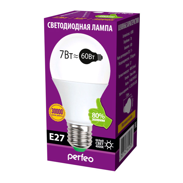 Perfeo светодиодная (LED) лампа PF-A60 7W 4000K E27