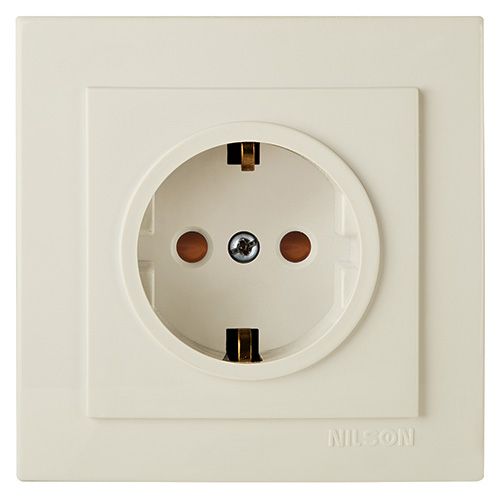 Розетка 1-я с/п с/з и защитной шторкой Крем TOURAN EKO Naturel (Thema) NILSON (1/10/100)