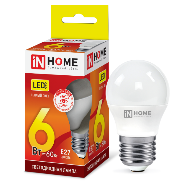 Как купить Лампа светодиодная LED-ШАР-VC 6Вт 230В Е27 3000К 480Лм IN HOME в Ростове-на-Дону или Краснодаре