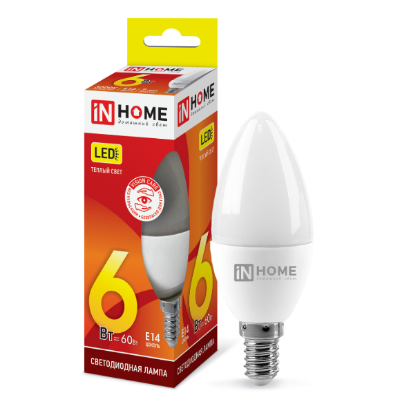 Как купить Лампа светодиодная LED-СВЕЧА-VC 6Вт 230В Е14 3000К 480Лм IN HOME в Ростове-на-Дону или Краснодаре