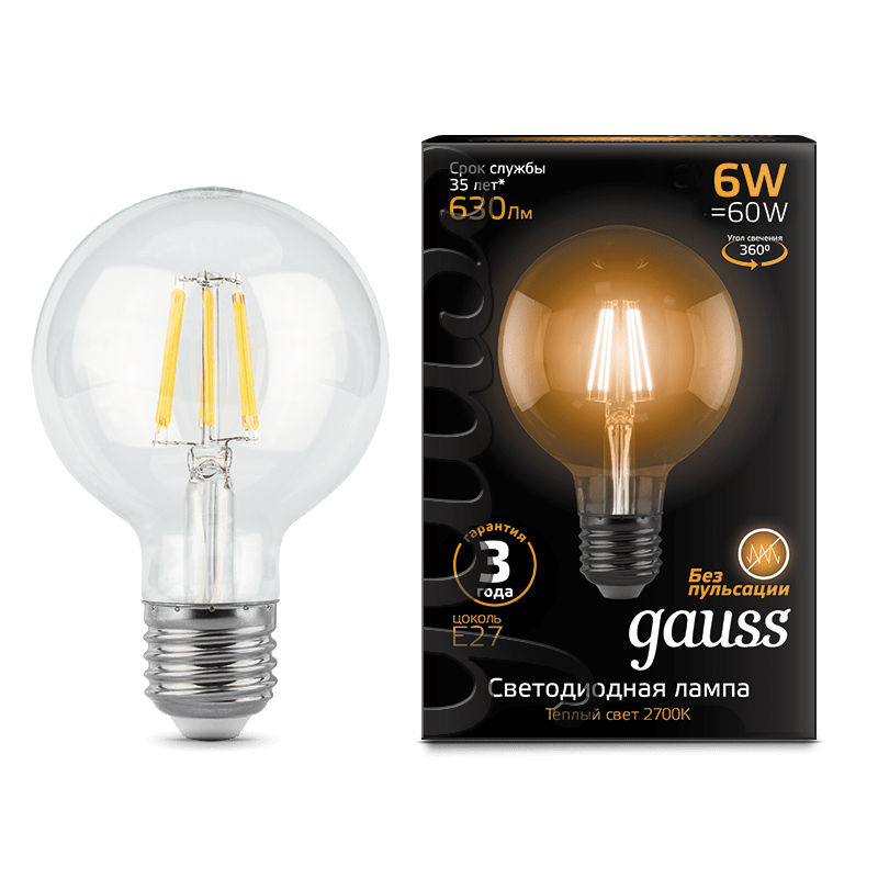 Как купить Лампа Gauss LED Filament G95 E27 6W 2700K 1/20 в Ростове-на-Дону или Краснодаре