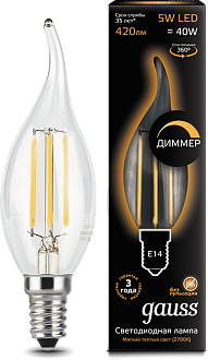 Лампа Gauss LED Filament Candle tailed dimmable E14 5W 2700K 1/10/50