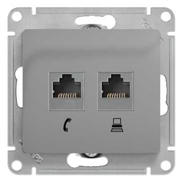GLOSSA РОЗЕТКА двойная RJ11+RJ45, кат.5E, механизм, АЛЮМИНИЙ