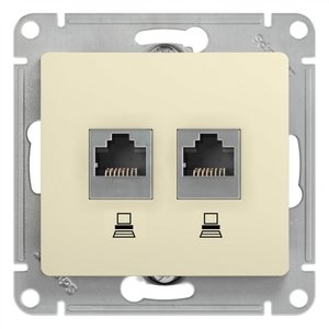 GLOSSA РОЗЕТКА двойная компьютерная RJ45+RJ45, кат.5E, механизм, МОЛОЧНЫЙ