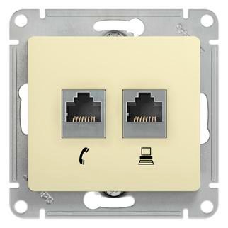 GLOSSA РОЗЕТКА двойная RJ11+RJ45, кат.5E, механизм, МОЛОЧНЫЙ