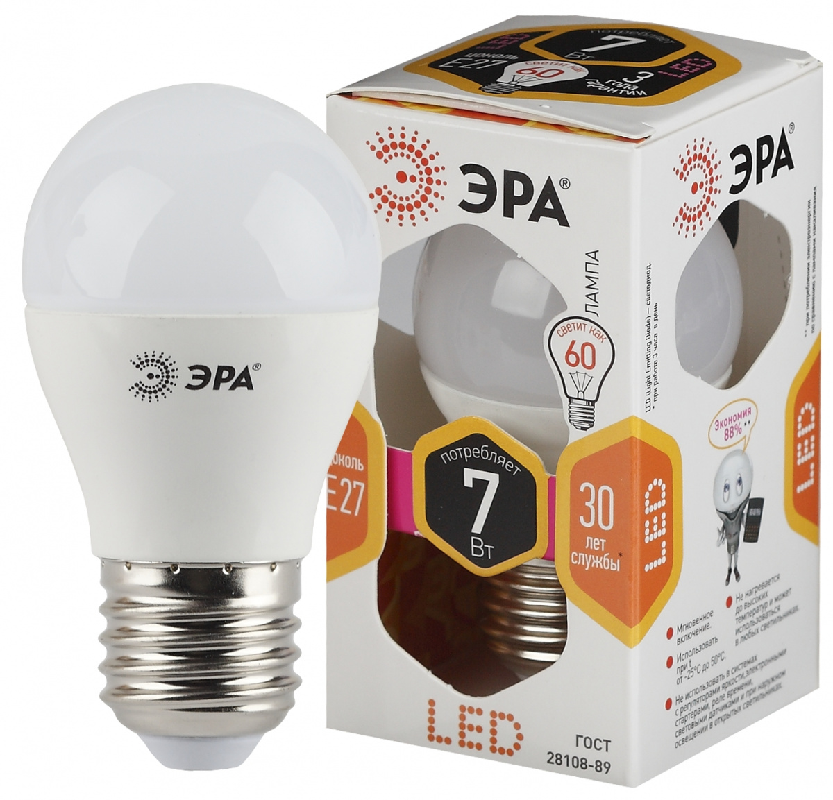 Как купить Лампа светодиодная ЭРА LED P45-7w-827-E27 (6/60) в Ростове-на-Дону или Краснодаре
