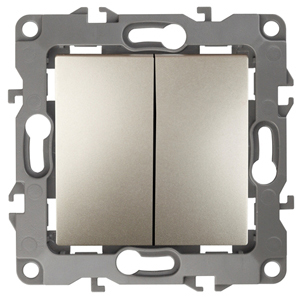12-1104-04 ЭРА Выключатель двойной, 10АХ-250В, Эра12, шампань (10/100)