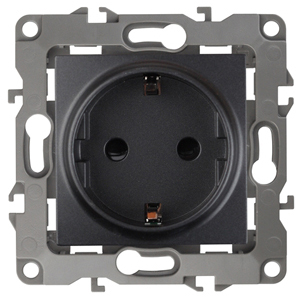 12-2001-05 ЭРА Розетка 2P+E Schuko, 16АХ-250В, без м.лапок, Эра12, антрацит (10/100)