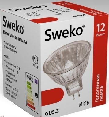 В интернет магазине компании ООО «Все для электромонтажа» на Главной странице вы можете перейти на страницу Каталог и выбрать категорию товара Источники света (лампы) там вы найдете вкладку подкатегории Лампы галогеновые где нужно выбрать Лампы галогеновые в которой находится нужный вам товар Галогенная лампа Sweko SHL-MR16-20-12-GU5.3.