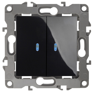 12-1105-06 ЭРА Выключатель двойной с подсветкой, 10АХ-250В, Эра12, чёрный (10/100)