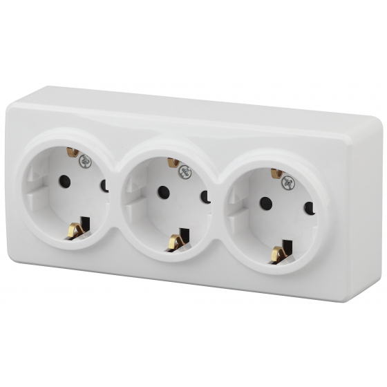 Наша компания реализует 11-2208-01 ЭРА Розетка 3х2P+E Schuko, 16АХ-250В, ОУ, Эра Эксперт, белый оптом со склада, по минимальным ценам от завода изготовителя.