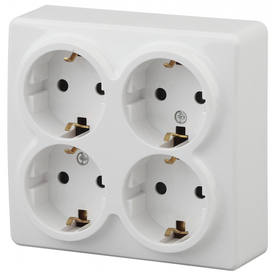 11-2211-01 ЭРА Розетка 4х2P+E Schuko со шторками, 16АХ-250В, ОУ, Эра Эксперт, белый