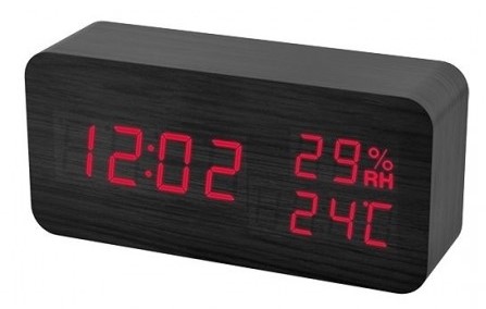 Perfeo LED часы-будильник "Wood", чёрный корпус / красная подсветка (PF-S736) время, температура, в