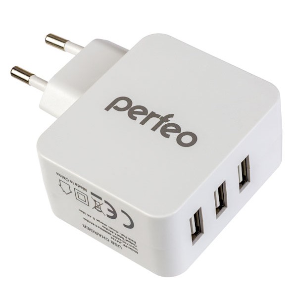 PERFEO Сетевое зарядное устройство с разъемом 3xUSB, 4.8А, белый, "CUBE 3" (PF_A4134)