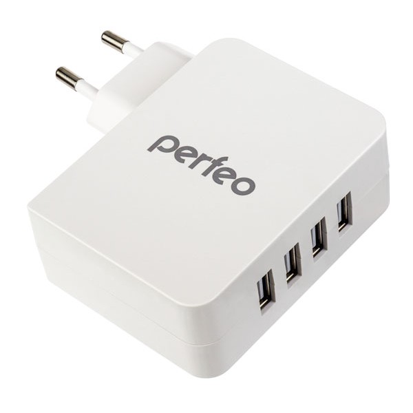 PERFEO Сетевое зарядное устройство с разъемом 4xUSB, 4.9А, белый, "CUBE 4" (PF_A4136)
