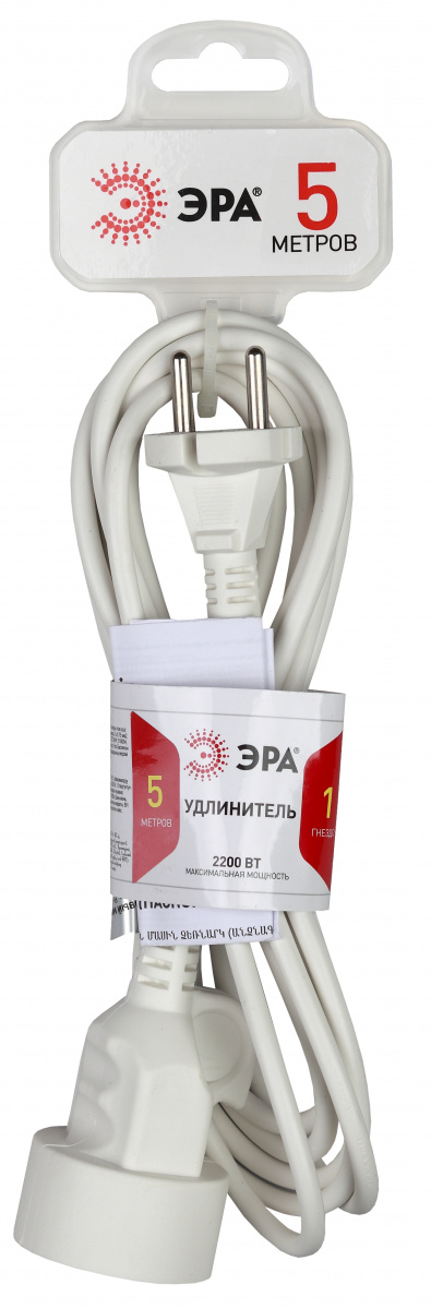 Удлинитель U-1-5m ЭРА без заземл, 2x0.75мм2, 1гн, 5м