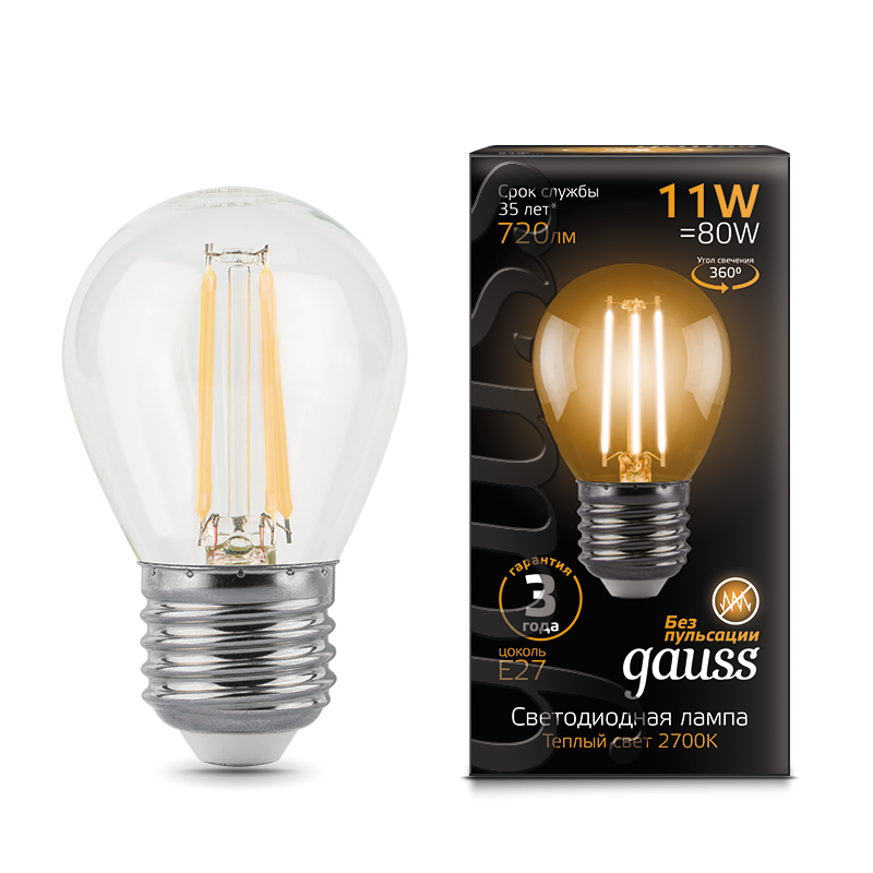 Как купить Лампа Gauss LED Filament Шар E27 11W 720lm 2700K 1/10/50 в Ростове-на-Дону или Краснодаре
