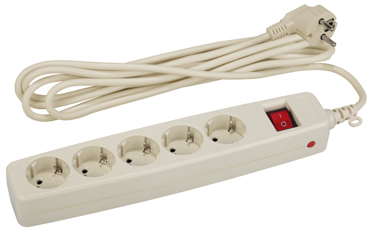 Как купить Сетевой фильтр SF-5es-2m-l ЭРА (сл. кость) с заземл, 3х1мм2, со шт, с выкл, 5гн, 2м, кор в Ростове-на-Дону или Краснодаре