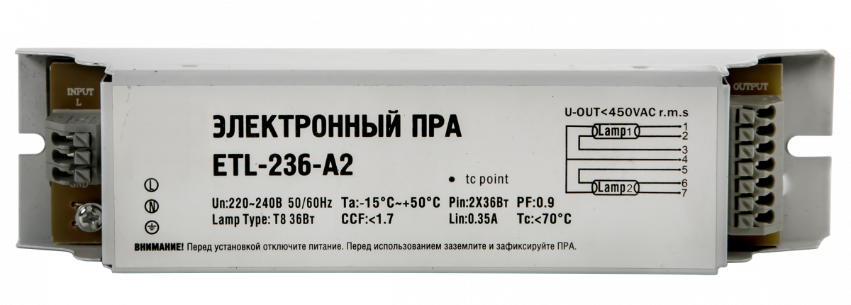 ПРА электронный ETL-236-A2 2х36Вт Т8/G13 ASD*