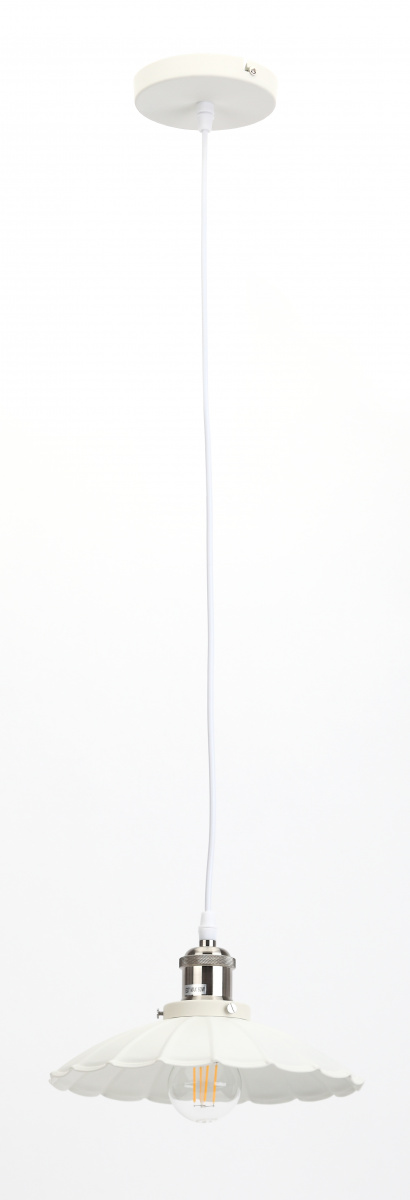 Подвес PL3 WH/SN ЭРА металл, E27, max 40W, d245 мм, шагрень белый/сатин никель