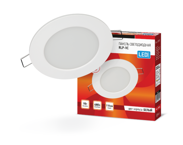 Панель светодиодная круглая RLP-VC 9Вт 230В 4000К 630Лм 118мм белая IP40 IN HOME