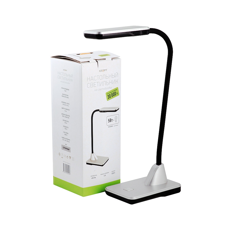 В интернет магазине компании ООО «Все для электромонтажа» на Главной странице вы можете перейти на страницу Каталог и выбрать категорию товара Светильники различного назначения там вы найдете вкладку подкатегории Светильники светодиодные LED где нужно выбрать Настольные светильники в которой находится нужный вам товар Светильник СТАРТ CT52 серебряный.