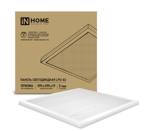 Панель светодиодная LPU-02 100Вт ПРИЗМА 230В 6500К 8500Лм 595х595х19мм IP40 IN HOME