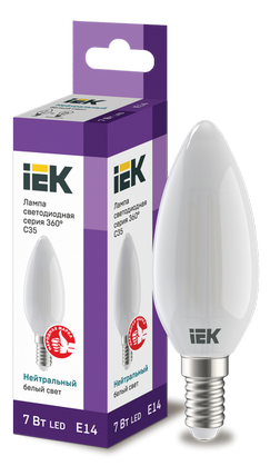 Лампа светодиодная C35 свеча матовая 7Вт 230В 4000К E14 серия 360° IEK