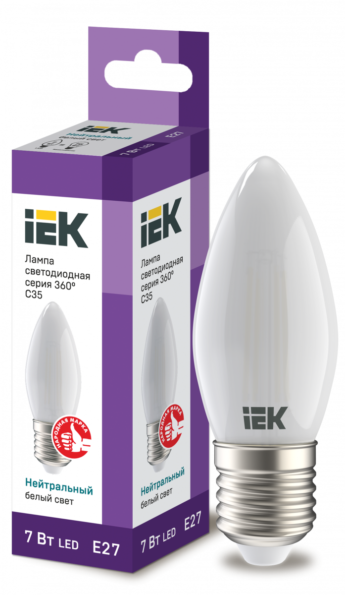 Лампа светодиодная C35 свеча матовая 7Вт 230В 4000К E27 серия 360° IEK