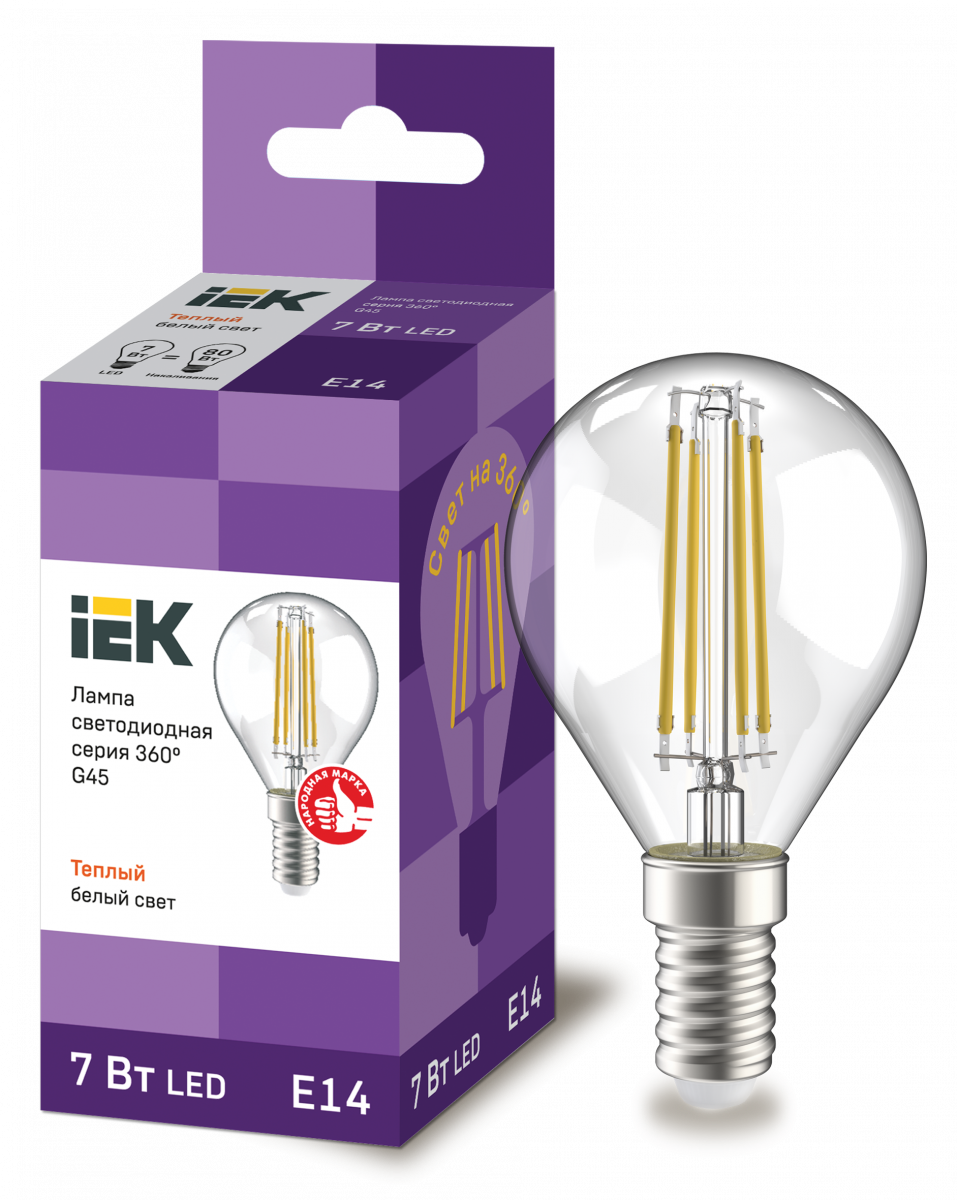 В интернет магазине компании ООО «Все для электромонтажа» на Главной странице вы можете перейти на страницу Каталог и выбрать категорию товара Источники света (лампы) там вы найдете вкладку подкатегории Лампы филаментовые где нужно выбрать Лампы филаментовые в которой находится нужный вам товар Лампа светодиодная G45 шар прозрачная 7Вт 230В 3000К E14 серия 360° IEK.