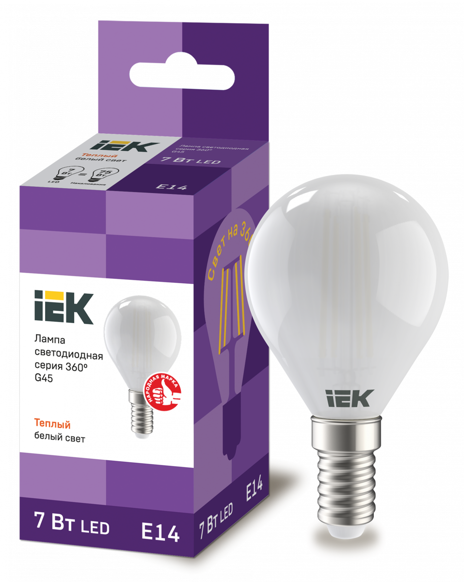 В интернет магазине компании ООО «Все для электромонтажа» на Главной странице вы можете перейти на страницу Каталог и выбрать категорию товара Источники света (лампы) там вы найдете вкладку подкатегории Лампы филаментовые где нужно выбрать Лампы филаментовые в которой находится нужный вам товар Лампа светодиодная G45 шар матовая 7Вт 230В 3000К E14 серия 360° IEK.