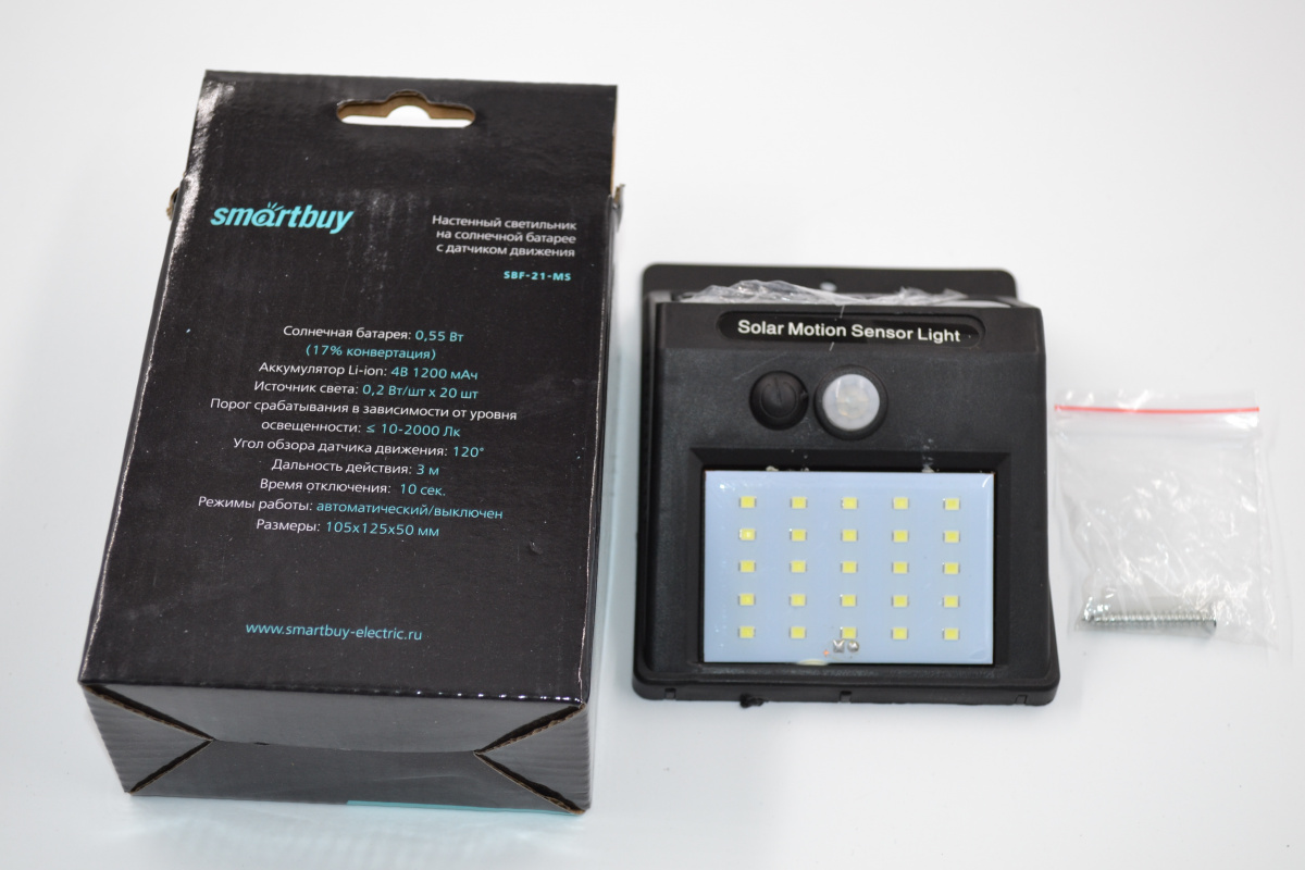Как купить Настенный светильник, на солнечных батареях, с датчиком движения, 20 LED, черный (SBF-21-MS)/100 в Ростове-на-Дону или Краснодаре