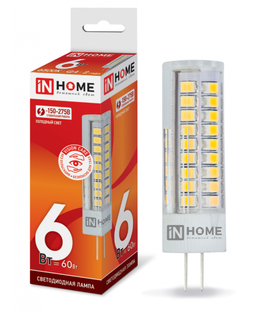 Как купить Лампа светодиодная LED-JCD-VC 6Вт 230В G4 6500К 540Лм IN HOME в Ростове-на-Дону или Краснодаре