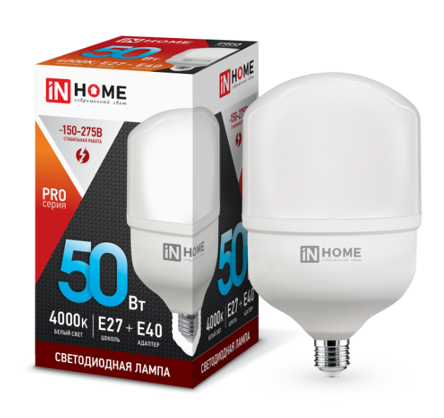 Как купить Лампа светодиодная LED-HP-PRO 50Вт 230В Е27 с адаптером E40 4000К 4500Лм IN HOME в Ростове-на-Дону или Краснодаре